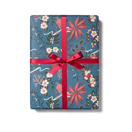 Blue Poinsettia holiday wrapping paper: Rolls of 3 sheets